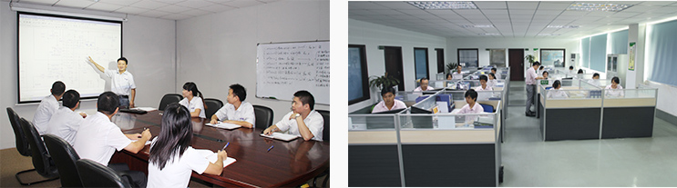 研发中心下设六个产品项目组和两个实验室;